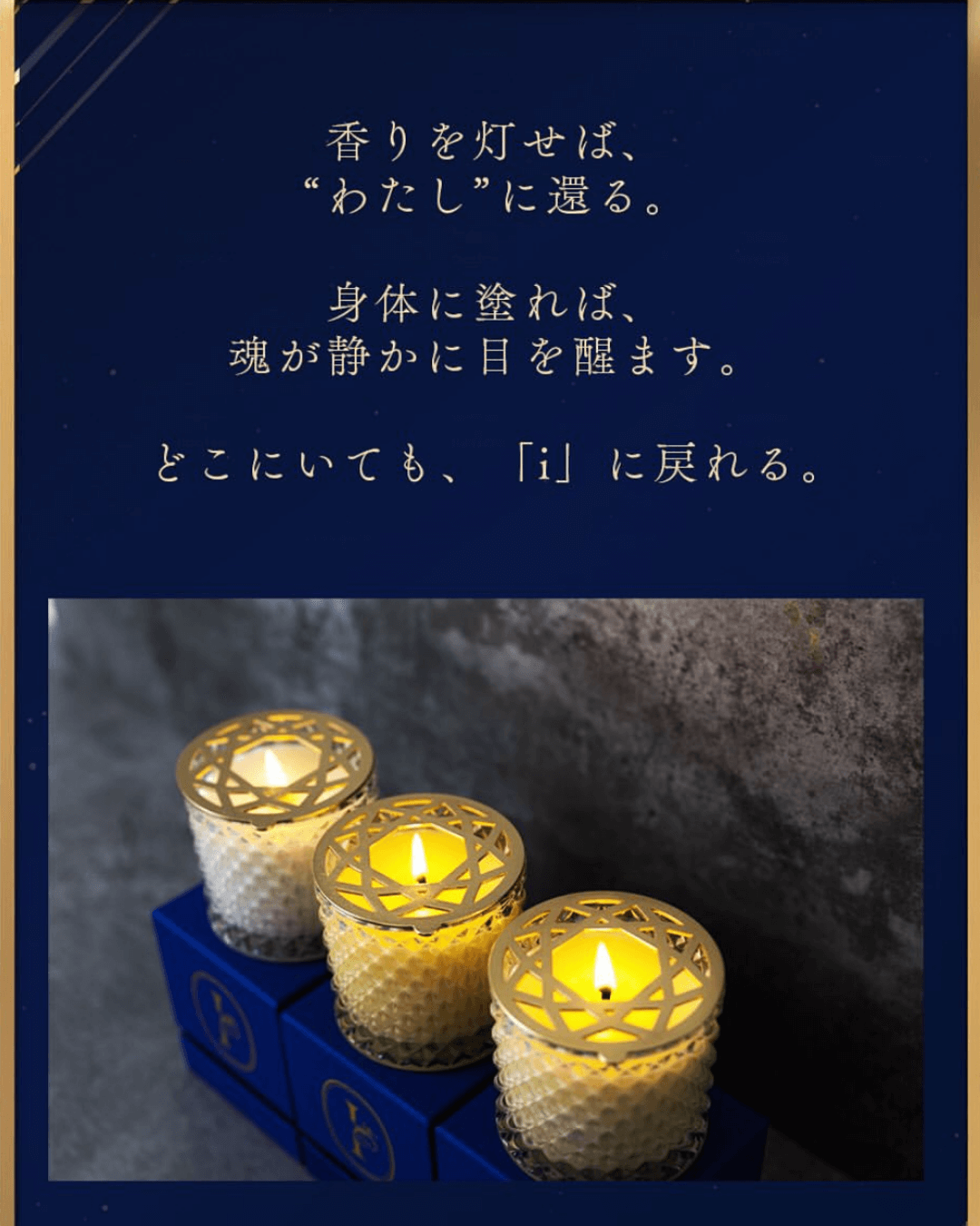 – 香りを灯せば、“わたし”に還る。 – 身体に塗れば、魂が静かに目を醒ます。 – どこにいても、「i」に戻れる。